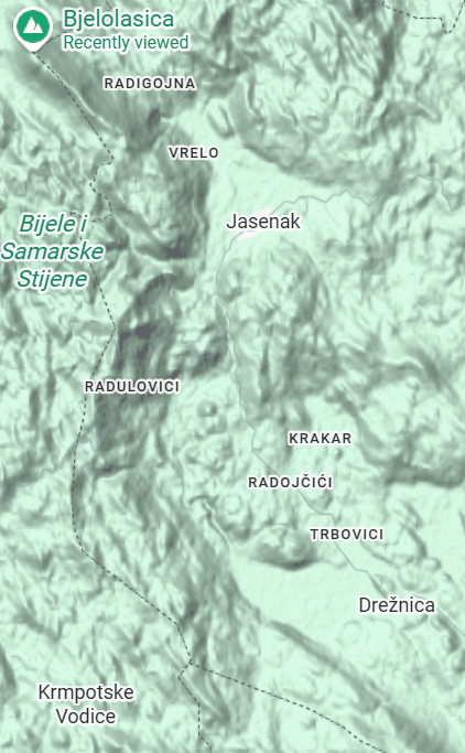 Rejon wsi Jasenak i Drežnica po wschodniej stronie Kapeli. Około dwudziestokilometrowy grzbiet górski oddziela najbardziej wysuniętą na zachód zwartą serbską wyspę etniczną od wsi chorwackich.